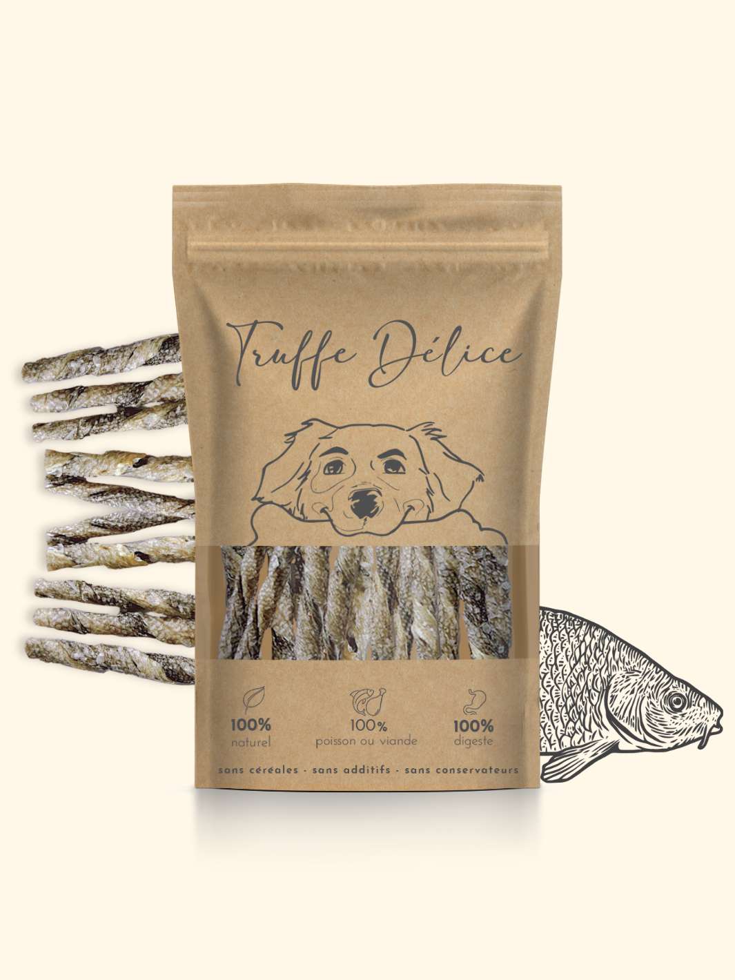 Ces friandises torsadées et marines séduisent tous les poilus, du chiot curieux au senior plus tranquille :